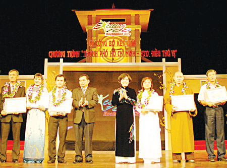 Phó Chủ tịch UBND TPHCM Nguyễn Thị Hồng chúc mừng đại diện các điểm tham quan thú vị. Ảnh: ĐỨC TRÍ